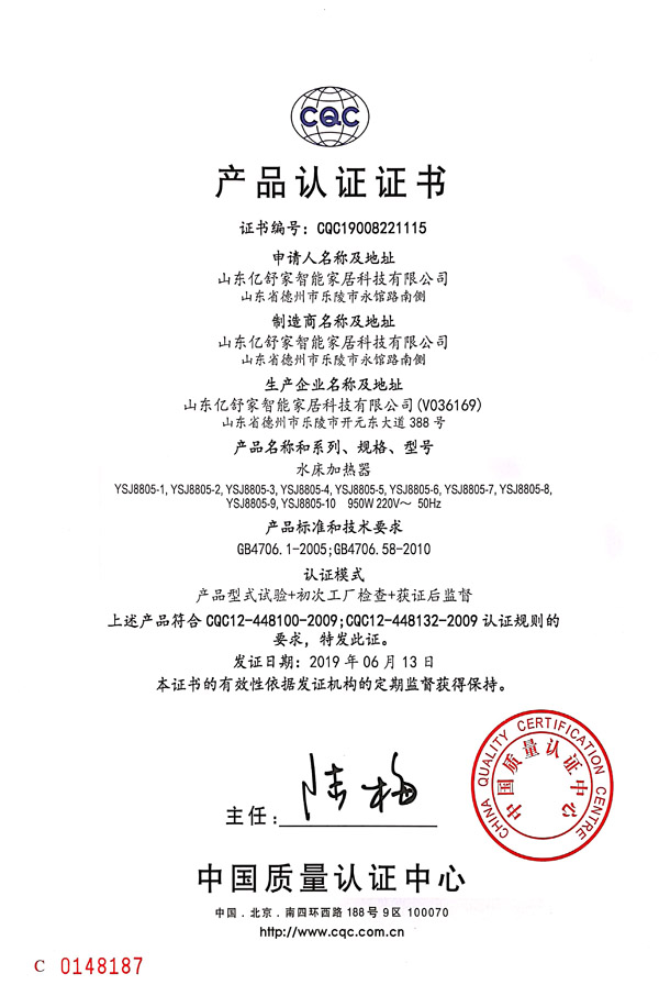 水床加熱器CQC產(chǎn)品認(rèn)證證書